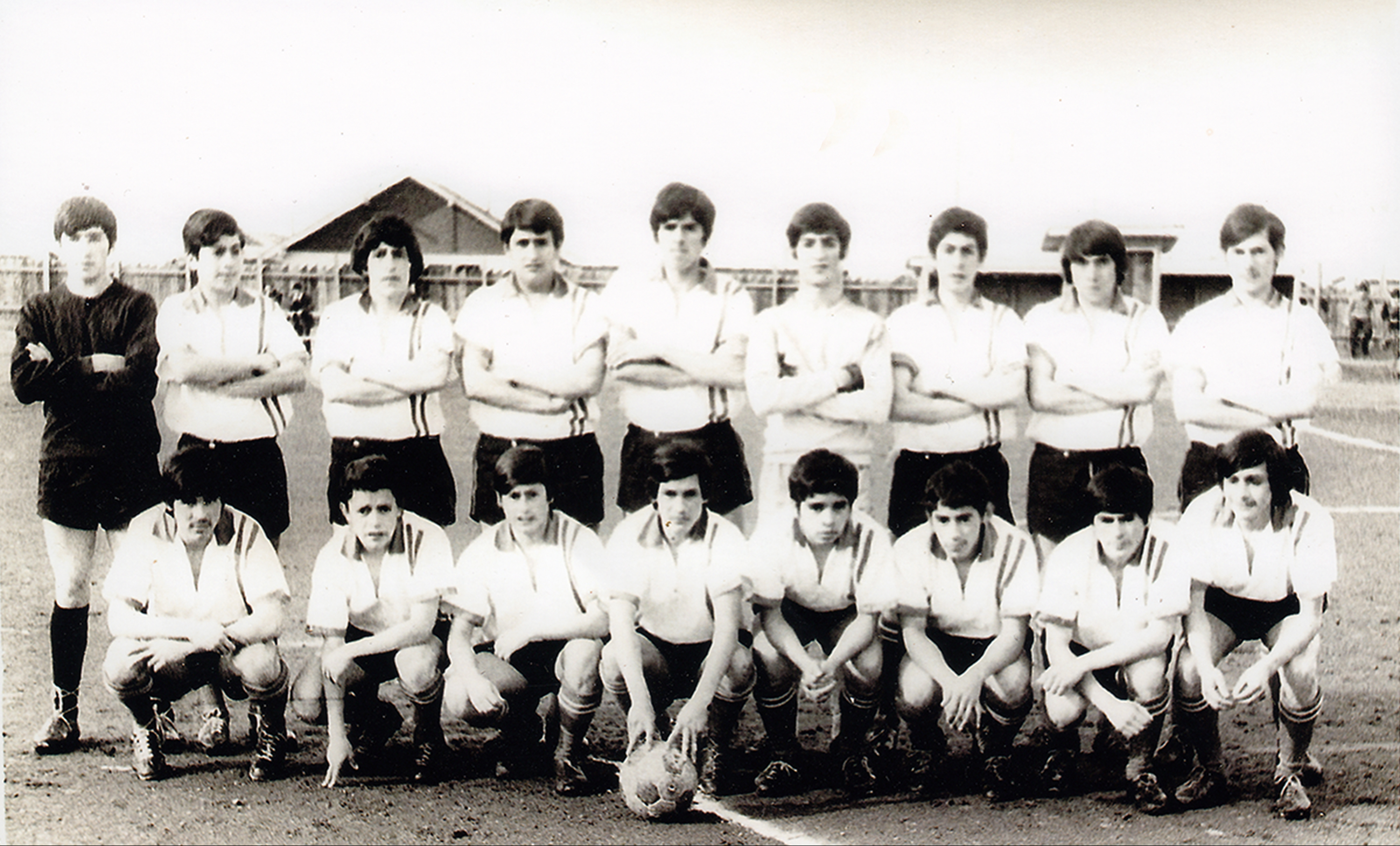 Agachados: Juan Jimenez, Hector Coutiño, Juan C Sandoval, Juan C Flores, Juan C Barría, N. Binder, Rodolfo Segura y Alonso Vargas. El entrenador era don Eleodoro Zambrano.