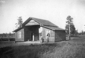 Caseta de pesaje, o romana para vehículos, en la antigua Fábrica de Lino de la Sociedad de Lino de La Unión en Purranque. La fábrica se construyó en el año 1934, llegando a tener 80 operarios que laboraban en la producción de estopa y fibra de lino para la fabricación de finas telas. La industria dejó de funcionar en los años 70.